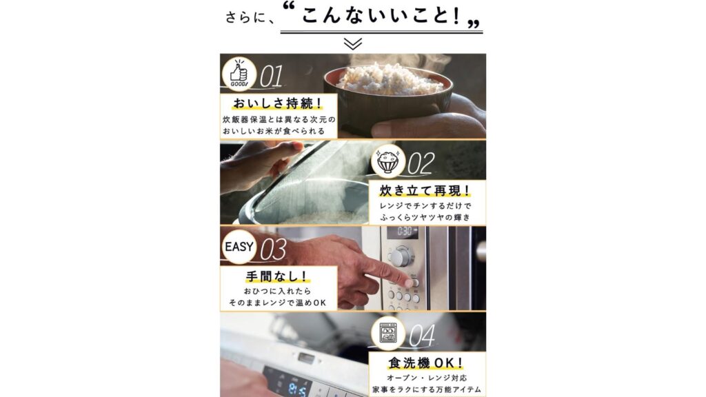 総合すると、「ご飯をおいしく保存したい人」「見た目にもこだわりたい人」には非常におすすめ